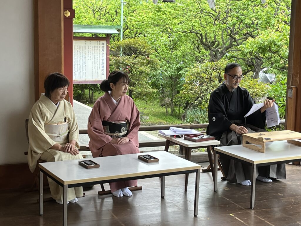 亀戸天神社神楽殿にて藤まつり奉納正式俳諧を興行しました。